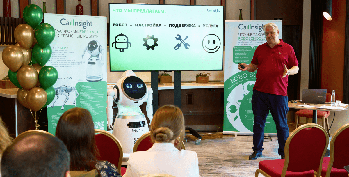 Робот-помощник организатора направляет гостей форума или выставки на нужные им мероприятия, рассказывает о расписании и докладчиках.