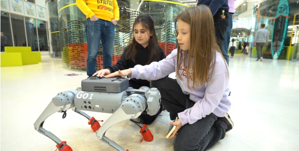 Робби – весёлый робопёс. Он часто работает в паре с Милой: провожает гостей форума в нужную аудиторию, развлекает их выполнением команд («Сидеть», «Лежать», «Дай лапу») и может станцевать. Кроме того, несмотря на то, что Робби – собака, он тоже говорит по-русски.