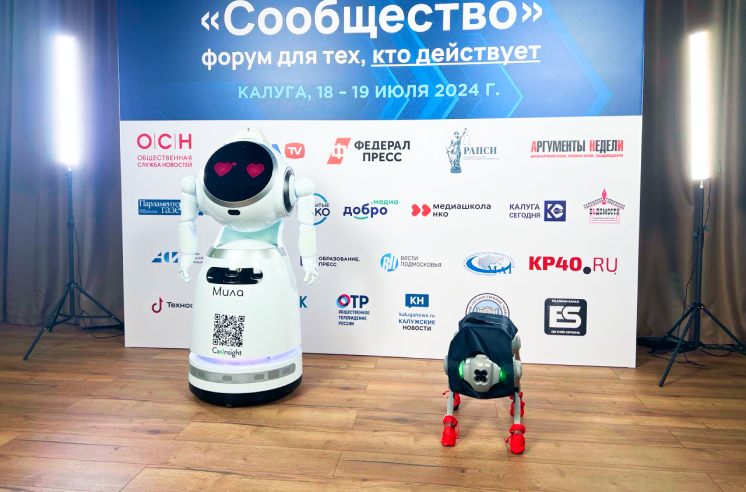 На выставке, форуме, бизнес-завтраке Робби активно помогает либо нашему роботу Миле, либо человеку-сотруднику ресепшен.
